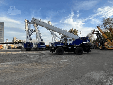 Standard Features: • Four section full power synchronized boom 35.1’- 113.9’ • 28.9’ or 50’ bi fold lattice jib (tilt type) with 5°, 25°, or 45° pinned offsets and self-storing pins. • Auxiliary lifting sheave (single top) storable • Variable speed main hoist with grooved drum, cable follower and 633’ of ¾” cable. • Variable speed auxiliary hoist with grooved drum, cable follower and 361’ of 3/4 “cable. • Drum rotation indicator (audible, visible and thumper type) main and auxiliary hoist • Anti-two block device (overwind cutout) • Boom angle indicator • Tadano electronic load moment indicator system (AML-C) • Outrigger extension length detector • Electronic crane monitoring system • Tadano twin slewing system and 360° positive slewing lock • Self-centering finger control levers with pilot control • Control pedals for boom elevating and boom telescoping • 3-way adjustable cloth seat with armrests, high back and seat belt • Tilt telescoping steering wheel • Tinted safety glass and sun visor • Front windshield wiper and washer • Roof window wiper and washer • Power window (cab door) • Rear view mirrors (right and left side) • Mirror for main and auxiliary hoists • Cigarette lighter and ashtray • Cab floor mat • Pump disconnect in operator’s cab • Hydraulic oil cooler • Hot water cab heater and air conditioner • Positive control • Quick reeving type bi-fold jib • Work lights • Independent controlled outriggers • Four outrigger extension positions • Self-storing outrigger pads • Cummins QSB6.7 turbo charged after cooled engine 270HP with exhaust brake • Electronic controlled automatic transmission driven by torque converter • 4 X 4 X 4 drive/steer • Non-spin rear differential • Semi-elliptic leaf springs suspension with hydraulic lockout device (front and rear) • 23.5-25(OR) tires • Disc brakes • Fenders • Air dryer • Water separator with filter (high filtration) • Engine over run alarm • Back up alarm • Low oil pressure/high water temp warning device (visual) • Rear steer centering light • Air cleaner dust indicator • Full instrumentation package • Complete highway light package • Tool storage compartment • Tire inflation kit • 24 volt electric system • 6.2 ton hook ball with swivel • 55 ton - 5 sheave with swivel hook block and safety latch for ¾” wire rope • Towing hooks front and rear • Lifting eyes • Hook block tie down (front bumper) • Weighted hook storage compartment • Halogen head lamp • Telematics (machine data logging and monitoring system) with HELLO-NET via Internet • Fuel consumption monitor • Eco mode system