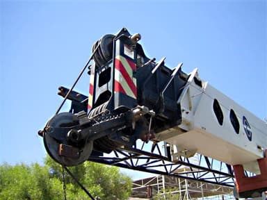 2001 Link-Belt HTC 8660, 60 Ton, CB&J#453, 110’ 4 Section Full Power Boom with Auxiliary Lifting Sheave, 34'-56' Offsetable Bi-fold Fly/Jib, 2 Winches with winch rollers, Drum Rotation Indicator, 2 Speed, Rated Capacity Limiter S Microguard 434 Graphic audio–visual warning system built into dash with anti–two block and function limiters with Internal RCL light bar, 40 Ton 4 Sheave Quick Reeving Hook Block, 8.5 Hook Ball, Joystick Controls, 12,000# Counterweights. 8'6" Link-Belt 8 X 4 Carrier w/Detroit Diesel Series 60 Engine Rebuilt in 2013 With Jake Brake, Eaton RTO-14909 Transmission, 11 Forward, 3 Reverse Speeds, Diesel Heater, Front Tires: 425/65R 22.5, Rear Tires: 12R22.5, Aluminum Disc Wheels, Aluminum Fenders, Aluminum Rims, Aluminum Outrigger Pads, Aluminum Storage Box, Confined Area Lifting Capacities Outriggers, 5th Front Outrigger, Air Suspension On Rear, Aluminum Diamond Plate Decking, Towing Shackles.