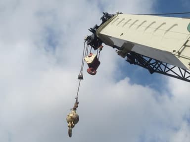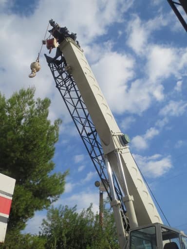 (2011) Replaced damage on auxiliary tip, three damaged head sheaves, winch cable with 400' of main and 300' auxiliary cable, and cable guard bracket on top shaft. Repaired side plates on boom tip.