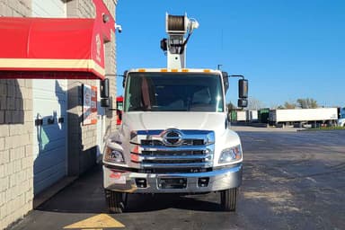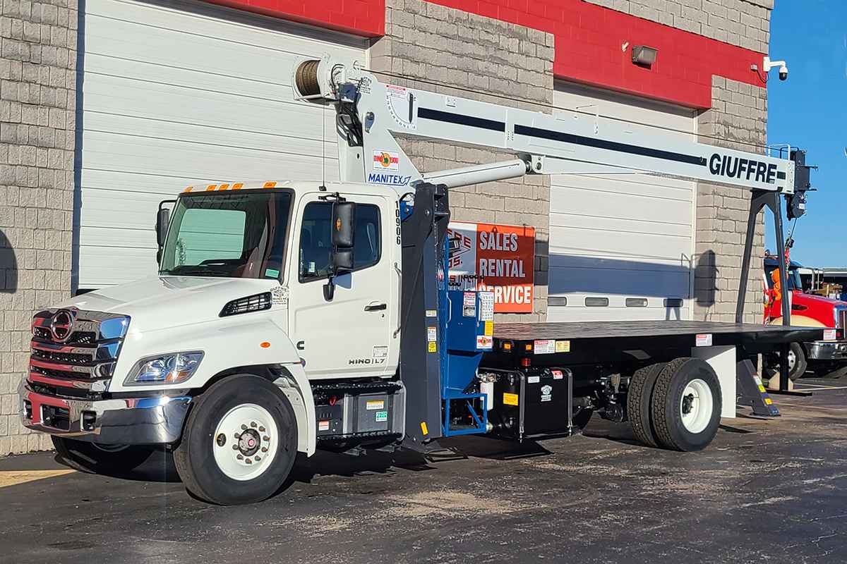 SELLING A NEW MANITEX 1970C 19TON CAPACITY HYDRAULIC BOOM TRUCK, CRANE HAS A 70’ 3-SECTION PROPORTIONAL BOOM, 80’ WORKING TIP HEIGHT, 2-SPEED WINCH, 3-SECTION PUMP, LMI W/DIGITAL DISPLAY, CANBUS INTERFACE, OVERLOAD SHUTDOWN & INTERNAL BOOM LENGTH CABLE, HARD WIRED ANTI-TWO BLOCK SYSTEM (A2B), A-FRAME HYDRAULIC FRONT OUTRIGGERS, A-FRAME REAR HYDRAULIC STABILIZERS, HEAVY DUTY 20’ X 8’ WOOD BED, MOUNTED ON A NEW 2025 HINO L7 TRUCK, 33,000G.V.W.R., 260HP CUMMINS B6.7 TURBO DIESEL ENGINE (660 LB/FT @ 1600RPM), ALLISON 5-SPEED AUTOMATIVE TRANSMISSION, 12K MONO TAPERLEAF FRONT SUSPENSION, 23K VARIABLE RATE MULTI-LEAF REAR SUSPENSION W/ LEAF SPRING HELPER, FULL AIR BRAKE PACKAGE INCLUDES WABCO ABS, HEATER & DRYER, 50 GAL ALUMINUM TANK & MORE!