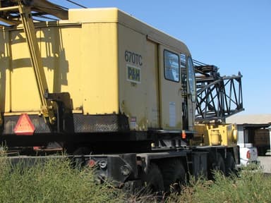 1978 P&H 670TC, 70 Ton, Cummins DSL Up, *100' Boom With Taper Tip, No Jib, 2 Winches, 3 Sec Twin Disc Torque Converter, 3 Sheave Block, 14,000# Front Bumper Counter Weight. Crane Comes With 40' Flat With Counter Weight Box. P&H 11' wide four axle carrier w/Cummins DSL, Manual Transmission, Tires Are New Non DOT. *Boom Is Located In Two Different Cities. $35,000 without boom trailer FOB Seller's yard in Oregon all load out charges on to buyer's trucks will be for buyer's account LOCATED IN OREGON!