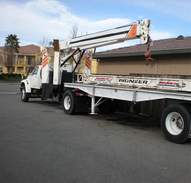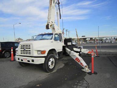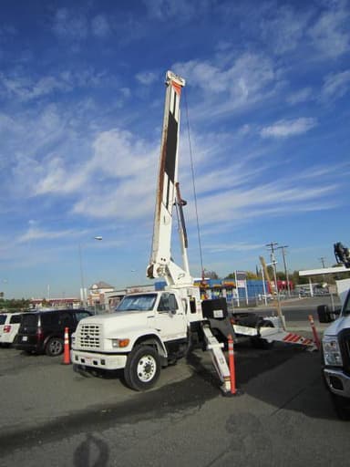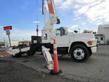 1998 Pioneer 1000 Tractor Mounted Crane, 15 Ton, 60' 3 Section Full Power Boom, (26’–44’) Side Stowed Off-Settable Jib, Main Winch With 11,000Lb+ Maximum Pull, 2 Spd.,15 Ton Hook Ball. Mounted Behind The Cab Of A Ford F-Series 33,000 GVWR TRUCK Set Up To Run As A 5Th Wheel With A 24’ Trailer, Or 18’ Flatbed Mount , Cummins B5.9L (230 Hp.) Diesel, 6-Speed) Transmission, Air Conditioning. The Truck Has Air Shift PTO Instead Of A Push–Pull Cable Type In The Floor, Two 36†Tool Boxes, Two-Man Steel Man Basket And Pintle Hitch With Air And Electric To The Rear For Trailor. Radio Remote Controls Make It A True One Man Operation.