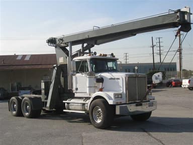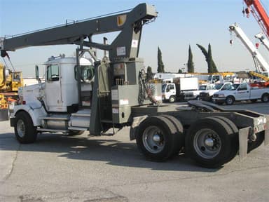 1990 SIMON RO TM2857, 14 TON, 57’ BOOM, 22' S.A. JIB, MAIN WINCH, A2B, 360 DEGREE LIFT CHART WITHOUT A FRONT STABILIZER. OPERATORS STATION HAS AIR THROTTLES AND ENGINE STOP/START SWITCHES, CAPACITY ALERT SYSTEM HOOK BLOCK & BALL. MOUNTED BEHIND THE CAB OF A 1991 WESTERN STAR TRUCK w/CAT 3176 AND A 15 SPEED RR TRANSMISSION, FRONT AND REAR HYDRAULIC STABILIZERS,TOOL BOX, ALUMINUM DIAMOND PLATE, CHROME WHEELS ON REAR.