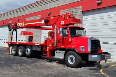 SELLING A USED MANITEX 35124C 35TON CAPACITY BOOM TRUCK, CRANE HAS A 5-SECTION 124’ PROPORTIONAL BOOM, 22’1” OUT-AND-DOWN OUTRIGGERS, INTERMEDIATE & FULLY EXTENDED OUTRIGGER CHARTS ARE STANDARD, INCLUDES HYDRAULIC FRONT STABILIZER, 2-SPEED PLANETARY HOIST W/ GROOVED DRUM & NEGATIVE DRAFT FLANGE, LMI W/ DIGITAL DISPLAY, OVERLOAD SHUTDOWN & INTERNAL BOOM LENGTH CABLE, AEROQUIP STC HYDRAULIC FITTINGS, 22’ X 8’ HEAVY DUTY WOOD BED & MORE! MOUNTED ON A USED 2025 FREIGHTLINER 108SD TRUCK, 370HP CUMMINS L9-9.3L TURBO DIESEL ENGINE W/ V.G.T. (1250 LB/FT TORQUE @ 1400 RPM, 72,000G.V.W.R., 40,000 LB TANDEM + 13,300 LB PUSHER, 20,000 LB FRONT STEER AXLE, ALLISON 6-SPEED AUTOMATIC TRANSMISSION, INTERAXLE TANDEM POWER LOCK, 40K 4-SPRING FLAT LEAF REAR SUSPENSION, 20K FLAT LEAF FRONT SUSP., REINFORCED INNER FRAME, A/C, CRUISE, 60GAL ALUMINUM TANK. APPROX. 3,900 MILES!